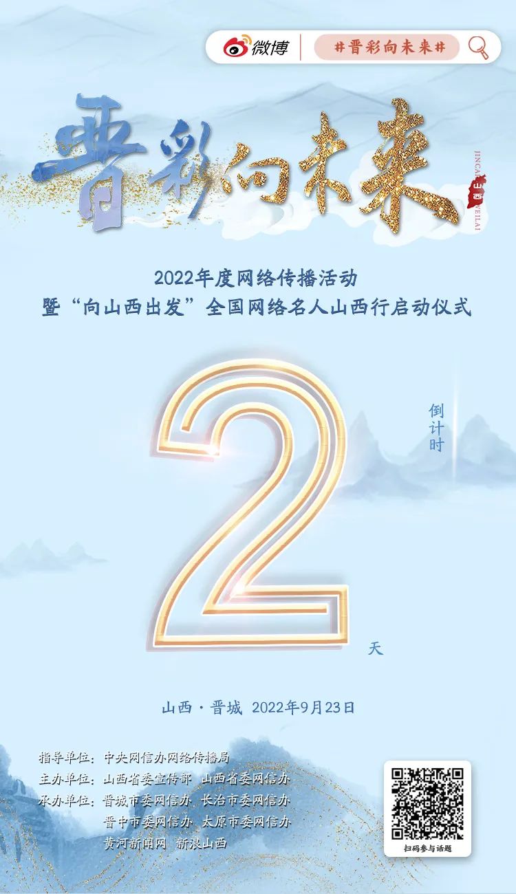 “晉彩向未來”年度網(wǎng)絡(luò)傳播活動(dòng),是“非凡十年?奮‘晉’未來”系列網(wǎng)絡(luò)主題宣傳活動(dòng)之一?;顒?dòng)共分為短視頻征集活動(dòng)、全國(guó)網(wǎng)絡(luò)名人山西行、優(yōu)秀作品展播三階段推進(jìn),目前短視頻征集已在線上預(yù)熱開啟。“晉彩向未來”2022年度網(wǎng)絡(luò)傳播活動(dòng)暨“向山西出發(fā)”全國(guó)網(wǎng)絡(luò)名人山西行活動(dòng)將于9月23日正式啟動(dòng)。