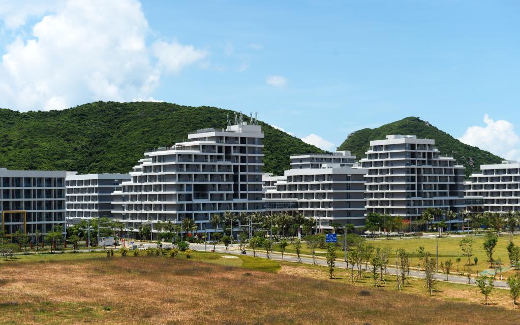 6月27日在海南陵水拍攝的國(guó)際教育創(chuàng)新試驗(yàn)區(qū)園區(qū)內(nèi)的學(xué)生宿舍樓。新華社記者 劉勇貞 攝