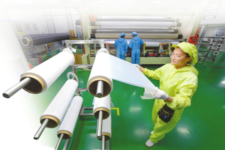 “只有這樣的構(gòu)造才能在隔絕電池正負(fù)極的情況下,還能保證鋰離子從中間自由通過??墒?,想在‘塑料布’上打出這種小孔可不容易?!倍跑S剛介紹,當(dāng)下無論是手機(jī)、電腦,還是新能源汽車,鋰電池早已與我們的生活息息相關(guān)。但由于鋰電池隔膜科技含量高,制造過程涉及多個(gè)學(xué)科,幾年前國內(nèi)的生產(chǎn)工藝、產(chǎn)品性能、產(chǎn)業(yè)鏈完整度都很低,隔膜等關(guān)鍵材料長期被外資壟斷。