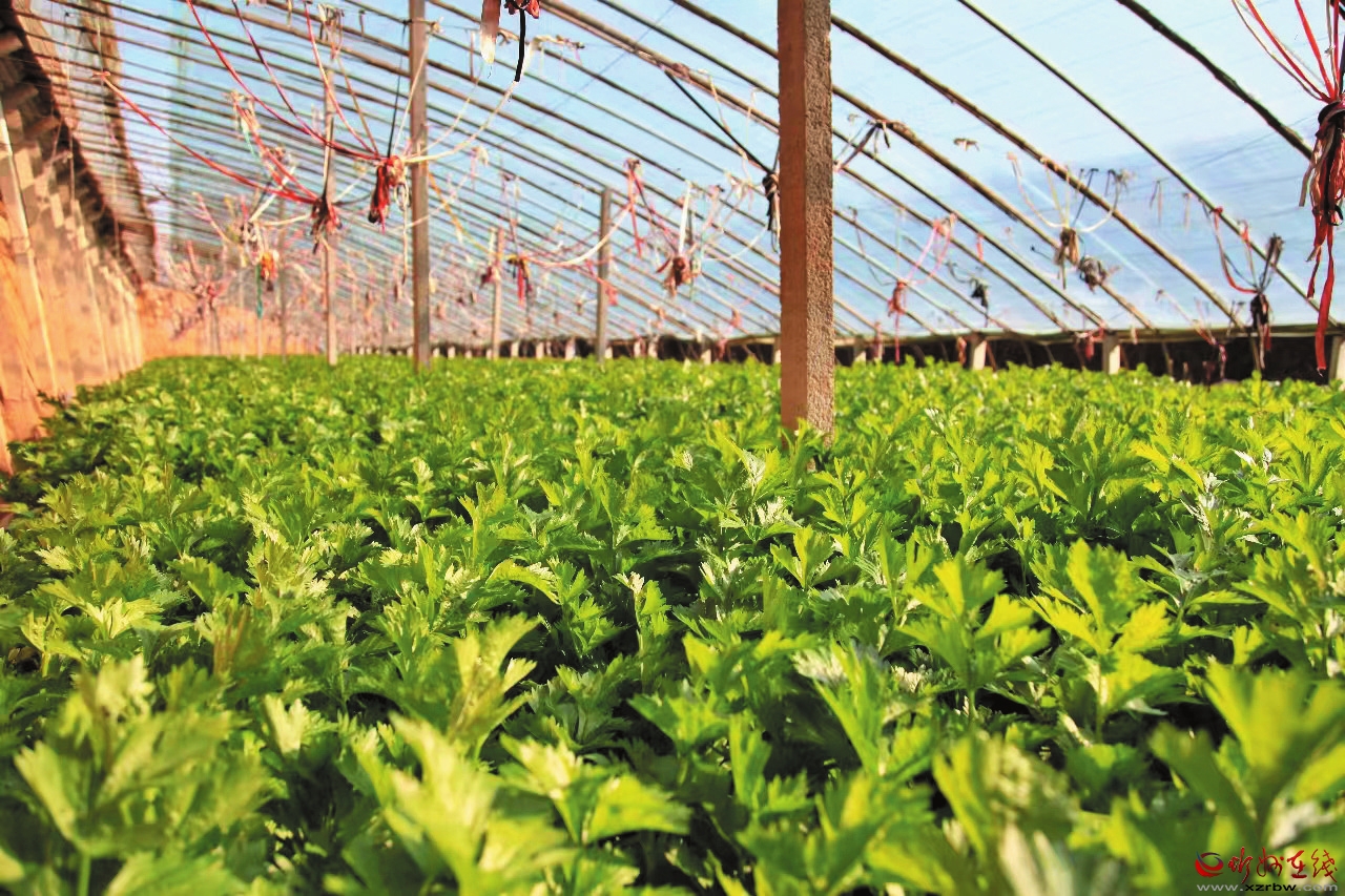 蔬菜大棚內(nèi)西芹長勢喜人。 本報記者 申 健攝