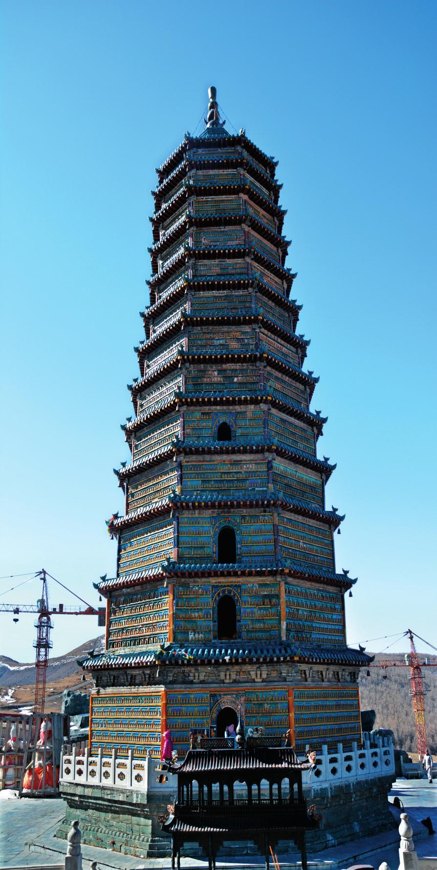 繁峙琉璃塔據(jù)塔第十一層懸掛的銅匾銘文記載,塔剎為奉皇帝之命修造,質(zhì)地為“滲金”,金光閃閃,再加綠色琉璃瓦,層層飛檐相間,給人以金碧輝煌又玲瓏剔透之感,充分反映了當(dāng)年明王朝社會經(jīng)濟(jì)的繁榮、科技水平的高超,展現(xiàn)出獨(dú)特的藝術(shù)氣息。塔身高大,氣勢雄偉,造型獨(dú)特,稱得上是我國現(xiàn)存琉璃塔中的典型代表,具有重大的建筑歷史研究意義。