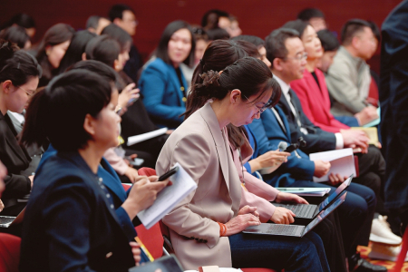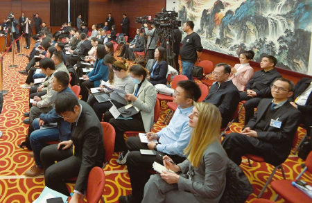 3月6日下午,山西代表團(tuán)媒體開(kāi)放日活動(dòng)現(xiàn)場(chǎng),記者踴躍提問(wèn)、代表真誠(chéng)回答,氣氛活躍熱烈。圖為中外記者齊聚。本報(bào)記者李聯(lián)軍 史曉波攝