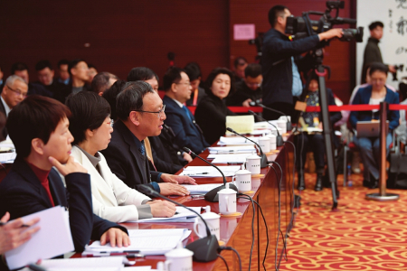 杭侃代表回答記者提問(wèn)。本報(bào)記者李聯(lián)軍 史曉波攝