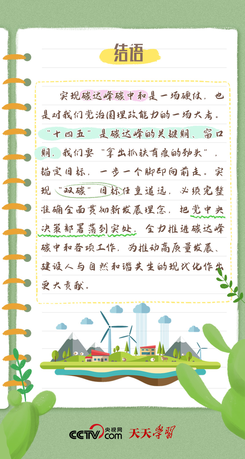 天天學(xué)習(xí)今年全國(guó)兩會(huì),習(xí)近平總書記在政協(xié)聯(lián)組會(huì)上,對(duì)“雙碳”工作作出最新部署。總書記強(qiáng)調(diào):“全面準(zhǔn)確落實(shí)精準(zhǔn)治污、科學(xué)治污、依法治污方針,推動(dòng)經(jīng)濟(jì)社會(huì)發(fā)展綠色化、低碳化,加強(qiáng)資源節(jié)約集約循環(huán)利用,拓展生態(tài)產(chǎn)品價(jià)值實(shí)現(xiàn)路徑,積極穩(wěn)妥推進(jìn)碳達(dá)峰碳中和,為高質(zhì)量發(fā)展注入新動(dòng)能、塑造新優(yōu)勢(shì)?!?/p>