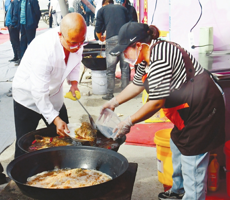 首屆熬魚美食節(jié)匯聚了代縣碗托、老咸菜、豆腐干等當(dāng)?shù)亍凹亦l(xiāng)味”,12家熬魚商戶更是集體亮相,現(xiàn)場(chǎng)烹飪銷售。賈狗狗有著近40年的熬魚經(jīng)驗(yàn),今年備貨比往年更足、更早。