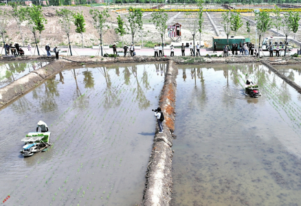 5月28日,太原市晉源區(qū)晉祠水稻插秧節(jié)在稻田公園舉行。活動現(xiàn)場,機器轟鳴、水波蕩漾,自動化插秧機勻速前進,水田里留下一簇簇新綠。卷褲腳、戴草帽、踏稻田、插秧苗、踩泥巴、捉魚蝦……一群群研學(xué)的孩子分批下田,感受手工插秧的樂趣,細嗅農(nóng)耕勞作的氣息。田埂上圍觀群眾的加油聲、喝彩聲不絕于耳,現(xiàn)場一片熱火朝天。