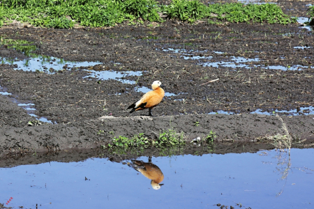 隨著生態(tài)環(huán)境向好、水位上升和近期氣溫回暖,多年未出現(xiàn)的中華赤麻鴨也現(xiàn)身赤橋村,時而在水塘邊覓食,時而在稻田里嬉戲。遠處鳥群凌空盤旋,鳥鳴聲不絕于耳,旋耕機在稻田來回穿梭,映著青綠山色,構成一幅生機盎然的和美鄉(xiāng)村畫卷。