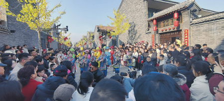 踏著節(jié)奏感十足的古風電音,一群身著古服、戲裝的年輕人從人群中跳出來,瞬時集結編隊,跳起熱舞。圍觀的人群跟著沸騰起來,大家鼓掌打拍、搖擺身姿,爆發(fā)出陣陣歡呼聲。農(nóng)歷大年初六,沁水縣土沃鄉(xiāng)下沃泉村的“沃泉星夢童年小鎮(zhèn)”街道上,正在進行的“國潮快閃”表演掀起歡樂浪潮。不止這一刻,也不止這一處。從大年初一開始,這里每天歡娛不停,處處熱鬧非凡。