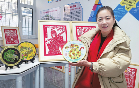 當日,下站街道文化活動室五顏六色、惟妙惟肖的彩色剪紙作品,也讓之前只見過紅色剪紙作品的記者眼前一亮?!斑@是染色剪紙。制作之前,需要先在白紙上起稿。剪出來后,會根據(jù)不同部位的特點進行上色,讓作品更加生動、更加活靈活現(xiàn)?!倍绶冀榻B,這次剪紙活動也是街道“非遺賀新春”主題活動的一部分,圍繞蛇年主題系列進行創(chuàng)作。