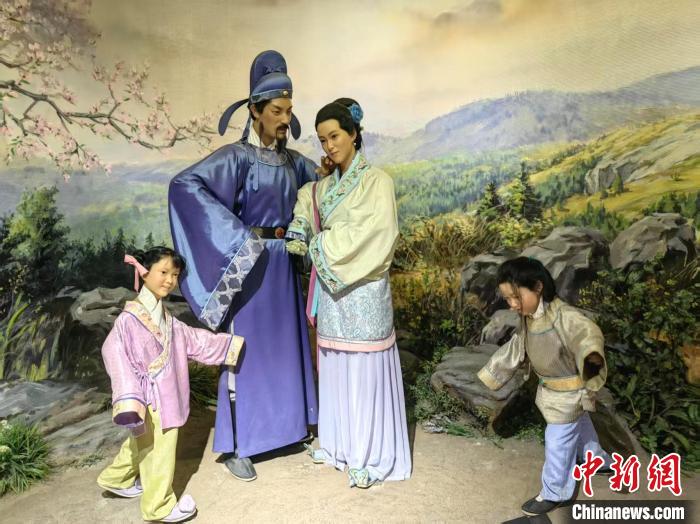 安陸李白紀念館內的李白與許氏夫人蠟像。 記者 艾啟平 攝