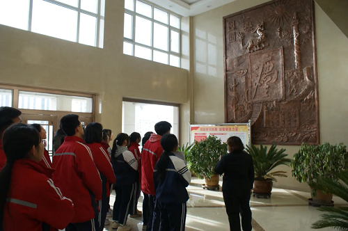 “這是什么字呢?”站在浮雕墻前,同學們提出疑問。