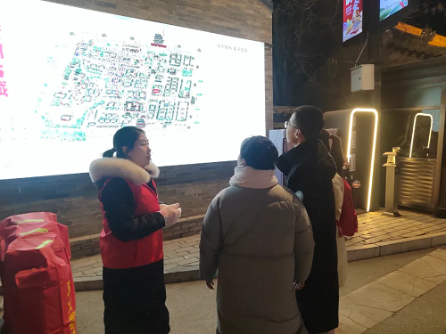 在涌動(dòng)的人流中,一抹“志愿紅”格外醒目。在古城的各個(gè)區(qū)域,法院干警身著統(tǒng)一的服裝,熱情地為游客拍照、打卡、掃碼,宣傳介紹古城的旅游景點(diǎn),還為游客提供路線指引、問(wèn)題解答、失物協(xié)尋等幫助,古城內(nèi)隨處可見(jiàn)他們忙碌的身影。