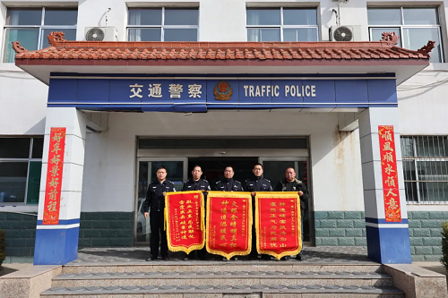3月13日,原平市同川鎮(zhèn)上社村的郝先生、閆莊村的樊先生l來到原平市公安局交警大隊(duì)事故中隊(duì),將印有“火眼金睛明真相 神速追逃暖民心”“神速破案執(zhí)法如山 凜然正氣為民解憂”的錦旗送到民警手中,以表達(dá)對(duì)交警心系群眾、履職盡責(zé)、迅速破案的感激之情。