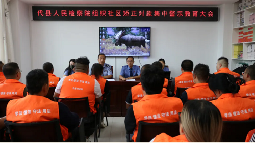 為進一步強化社區(qū)矯正人員的紀律意識和法律觀念,預防脫管、漏管和再犯罪行為的發(fā)生,8月26日,代縣檢察院聯(lián)合縣司法局召開社區(qū)矯正人員警示教育大會,轄區(qū)內40余名社區(qū)矯正對象參加會議。