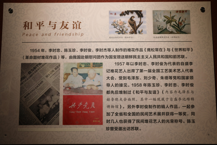 然而,歷史的波瀾并未停止。中華人民共和國(guó)成立后,堆花藝術(shù)經(jīng)歷了從繁榮到衰落,再到復(fù)興的曲折歷程。在黨和政府的關(guān)懷下,老一輩堆花藝人積極響應(yīng)號(hào)召,成立堆花小組,將堆花藝術(shù)服務(wù)于國(guó)家建設(shè)和人民生活。抗美援朝期間,堆花作品作為國(guó)寶贈(zèng)予朝鮮,見(jiàn)證了中朝兩國(guó)人民的深厚友誼。