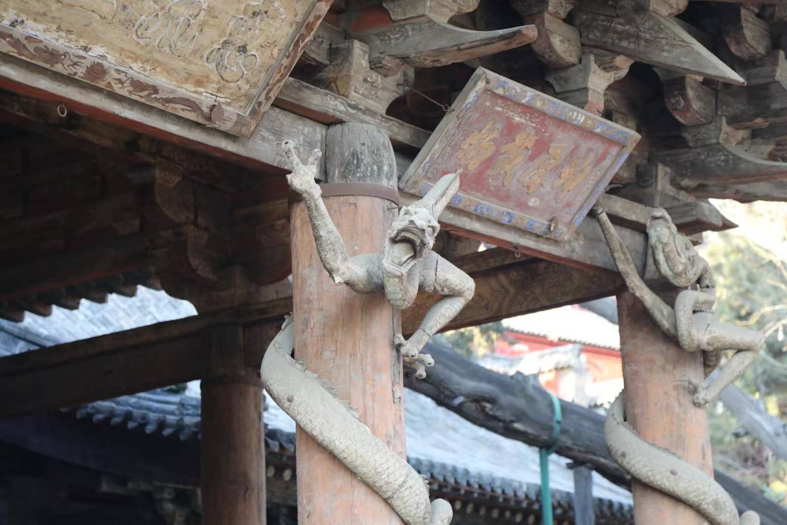 在一處文化遺產(chǎn)中保存有如此眾多的文物精品,實屬罕見。采風團跟隨講解員的步伐,走進我國宋代建筑的代表作圣母殿前,一同欣賞我國現(xiàn)存唯一的十字型古橋——宋代魚沼飛梁和金代建筑獻殿,這三個建筑也被被譽為“晉祠三大國寶建筑”。