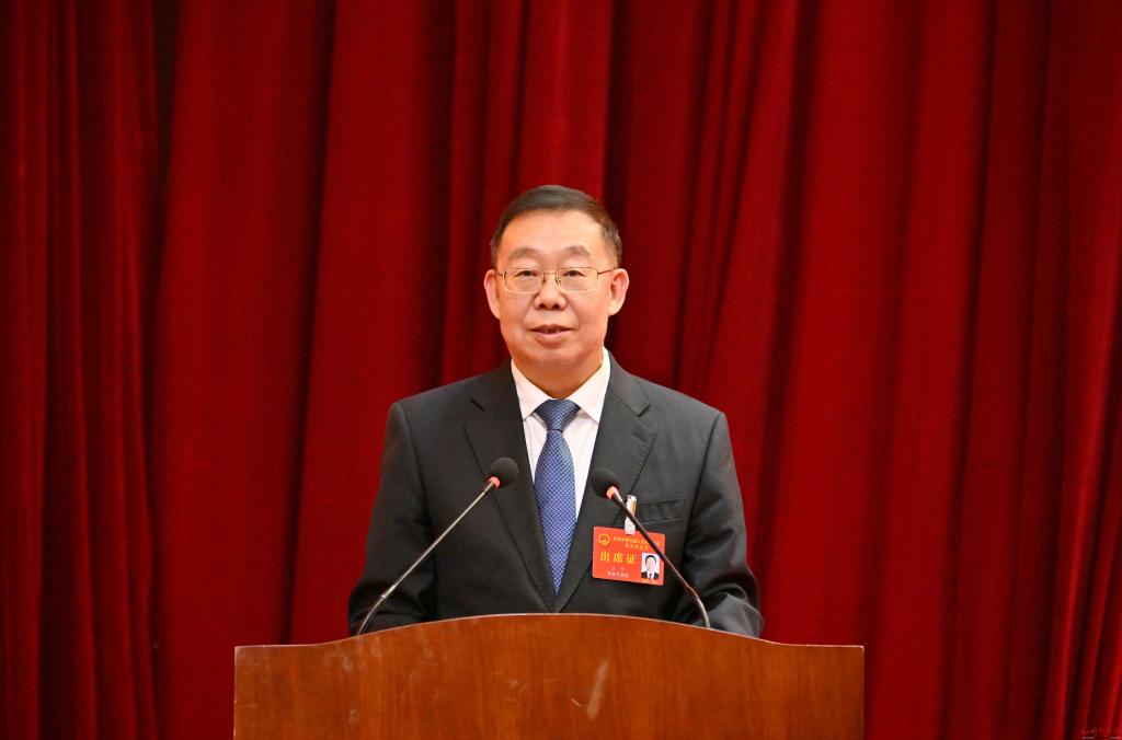 王珍向大會(huì)作市人大常委會(huì)工作報(bào)告。馮曉磊 攝