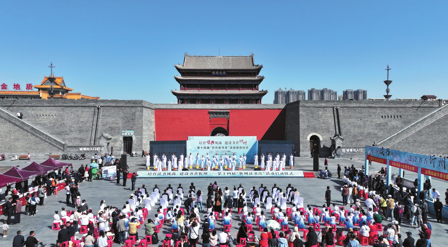 第十四屆“忻州讀書月”活動啟動儀式。物產(chǎn)豐饒與非遺魅力;廣電主持人“展望風(fēng)華未來”,以忻州別稱“欣州”為引,暢想交通暢達(dá)、百業(yè)興旺的發(fā)展藍(lán)圖。