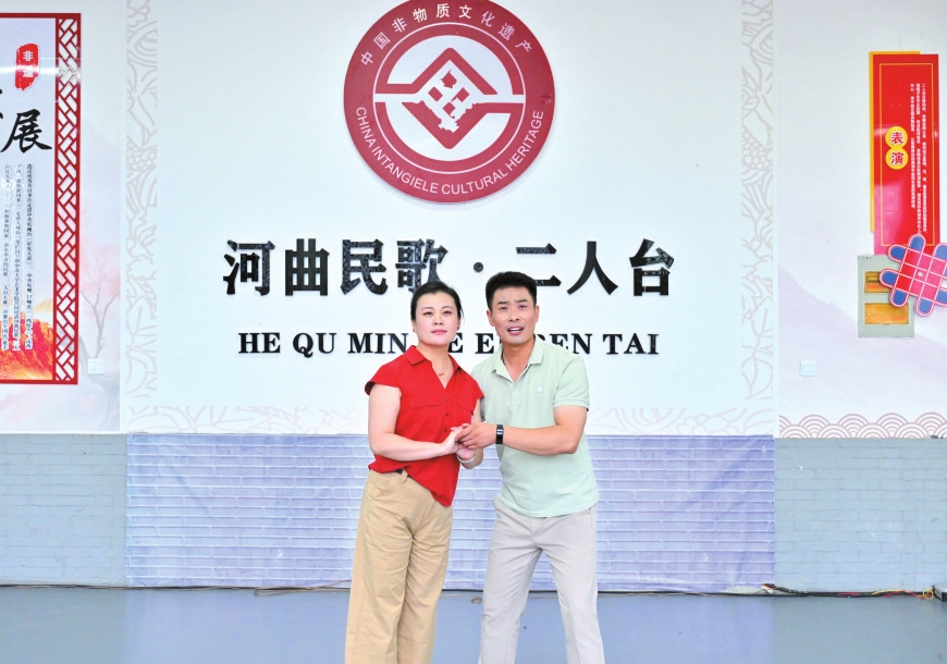 走進(jìn)河曲縣白樸公園,一段清亮婉轉(zhuǎn)的唱腔便隨風(fēng)入耳——河曲縣民歌二人臺藝術(shù)團(tuán)演員鄔光正和同事們?nèi)橥度?,打磨大型非遺音樂劇《大河長歌》。他額角滲著細(xì)密的汗珠,當(dāng)唱到“好兒女今日唱長歌,勝過了前輩了不得”時,突然停了下來,對搭檔說:“再來一遍,剛才那口氣沒頂滿?!边@份對細(xì)節(jié)的較真,藏著他對二人臺藝術(shù)最樸素也最深厚的敬畏。