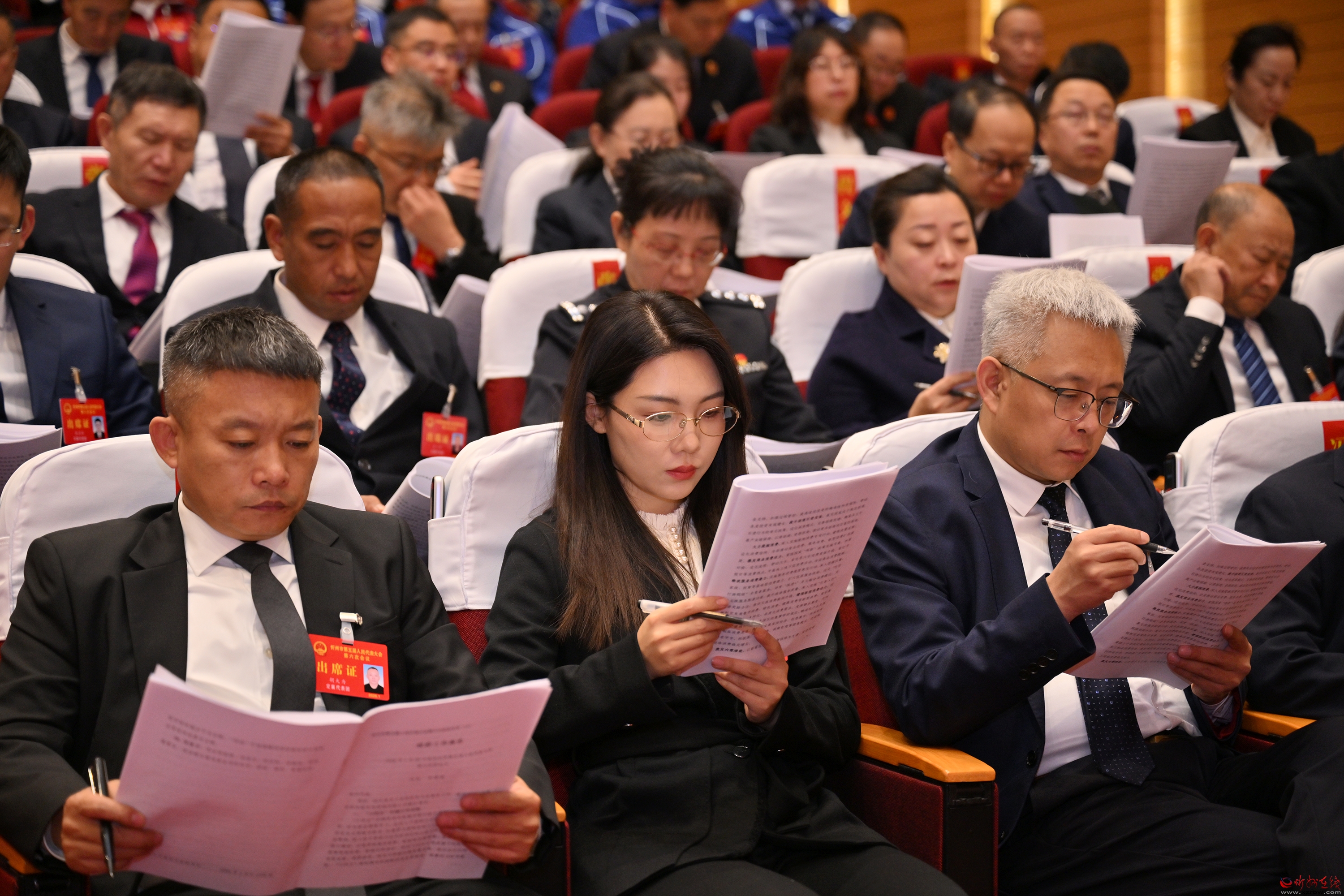 泛華會(huì)場(chǎng)內(nèi)簡(jiǎn)樸莊嚴(yán),主席臺(tái)帷幕正中的國(guó)徽在鮮艷的紅旗映襯下熠熠生輝。會(huì)場(chǎng)二樓“更加緊密地團(tuán)結(jié)在以習(xí)近平同志為核心的黨中央周圍,奮力譜寫中國(guó)式現(xiàn)代化忻州篇章”的標(biāo)語,提振信心、催人奮進(jìn)。